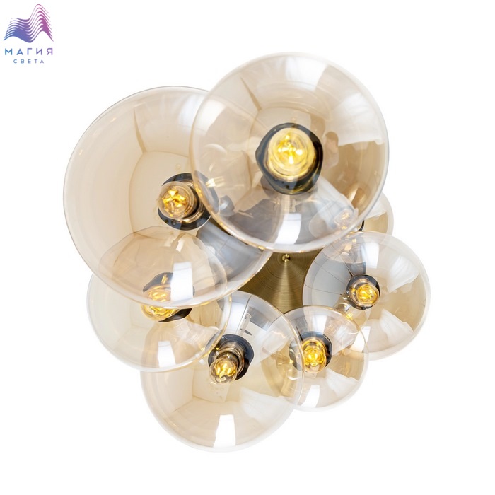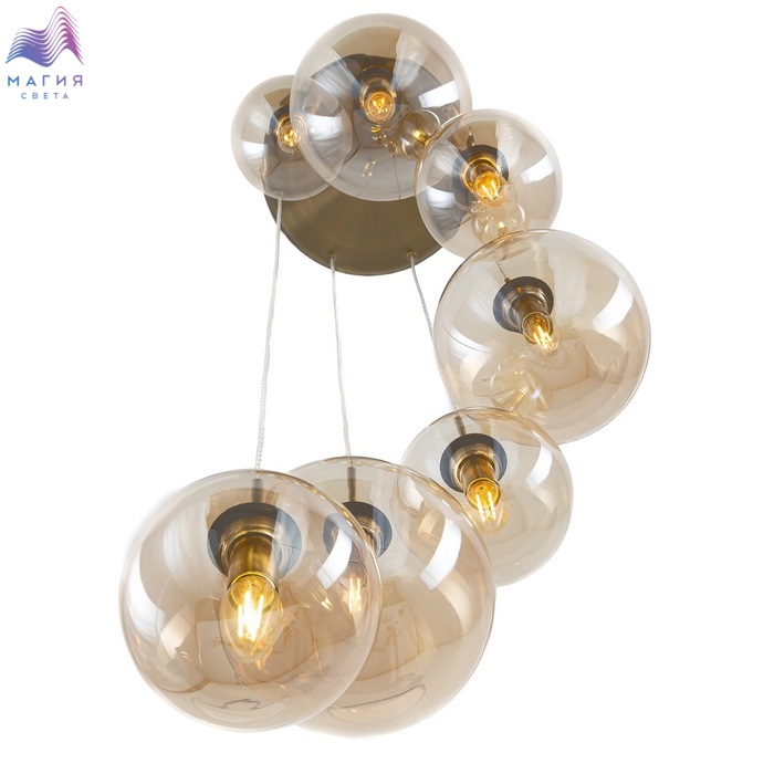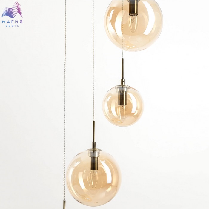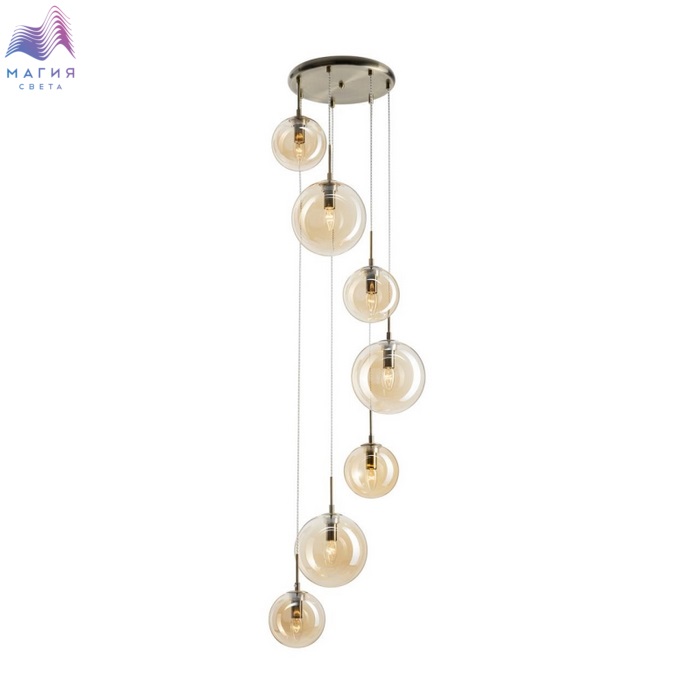 Подвесной светильник Citilux Томми CL102073. Материал: металл/стекло. Цвет: бронза/шампань. Основание светильника круглой формы. Подвесная спираль каскада сформирована плафонами двух размеров, диаметром 15см и 20см. Плафоны в форме шара.