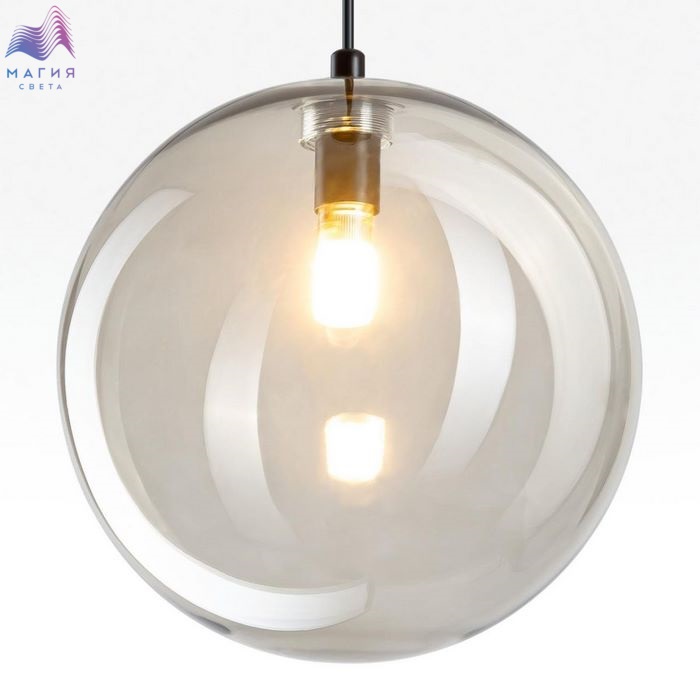 Подвесной светильник Citilux ORTON CL202021. Материал: металл/стекло. Цвет: матовый черный/дымчатый. Плафон в форме шара. Прозрачный стеклянный шар с лёгким дымчатым оттенком, подвешенный на чёрном матовом металлическом основании, выглядит эффектно при любом освещении.