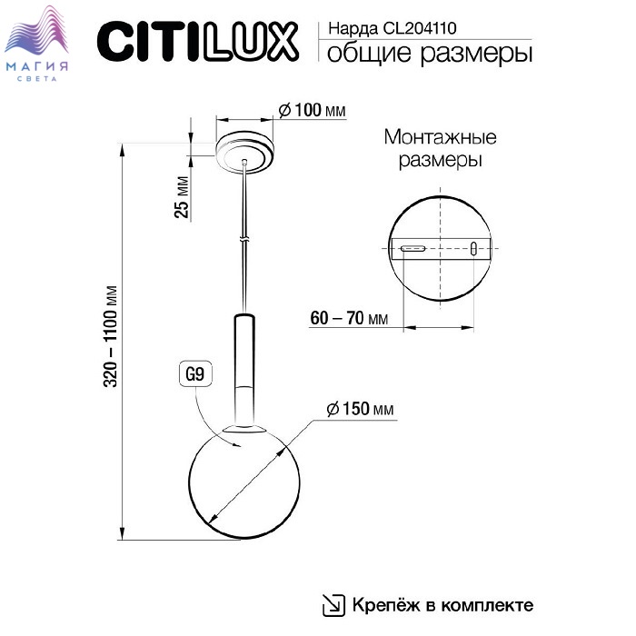 Подвесной светильник Citilux Нарда CL204110. Материал: металл/стекло. Цвет: бронза/черный/шампань. Плафон в форме шара. Высота светильника легко регулируется при установке в диапазоне от 32см до 1,1м.
