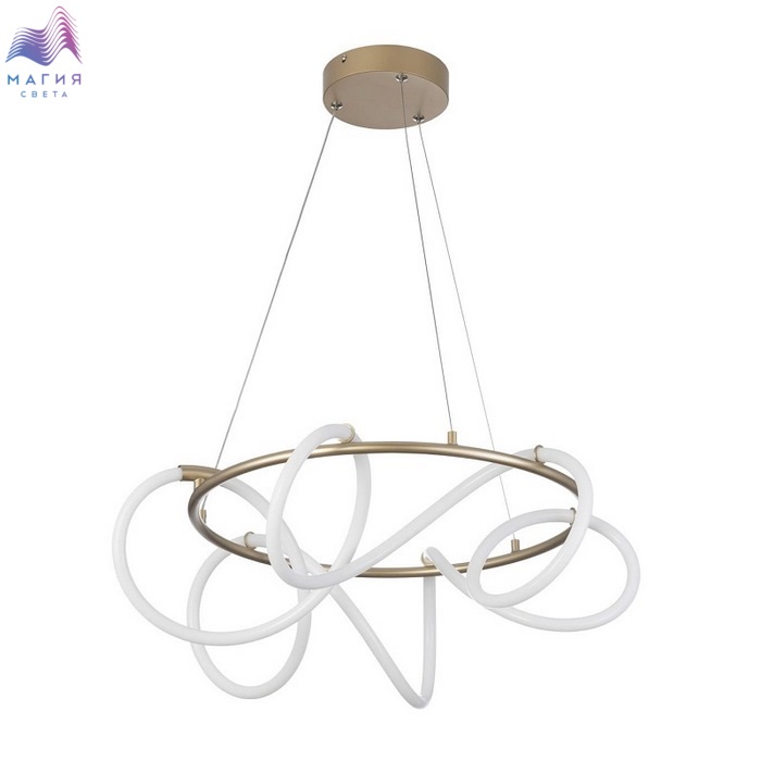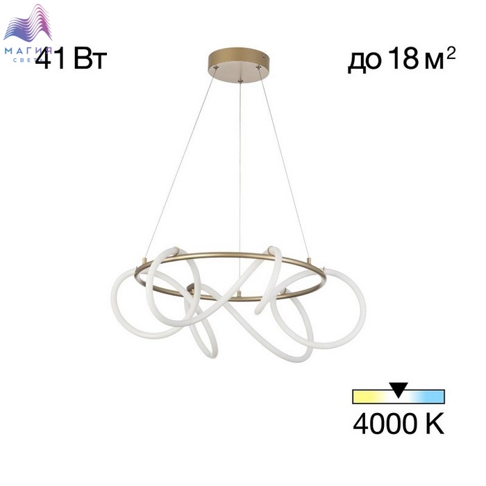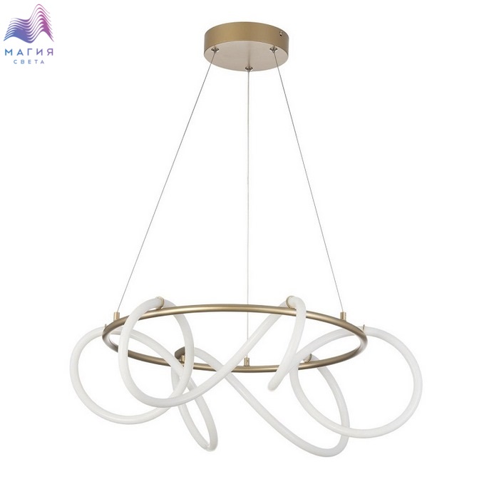 Подвесной светодиодный светильник Ситилюкс EVA CL210132. Материал: металл/полимер. Цвет: матовое золото/белый. Мощность изделия 41Вт, световой поток 4140Лм, цветовая температура 4000К. Высота легко регулируется при установке в диапазоне от 37 см до 1,4 м.