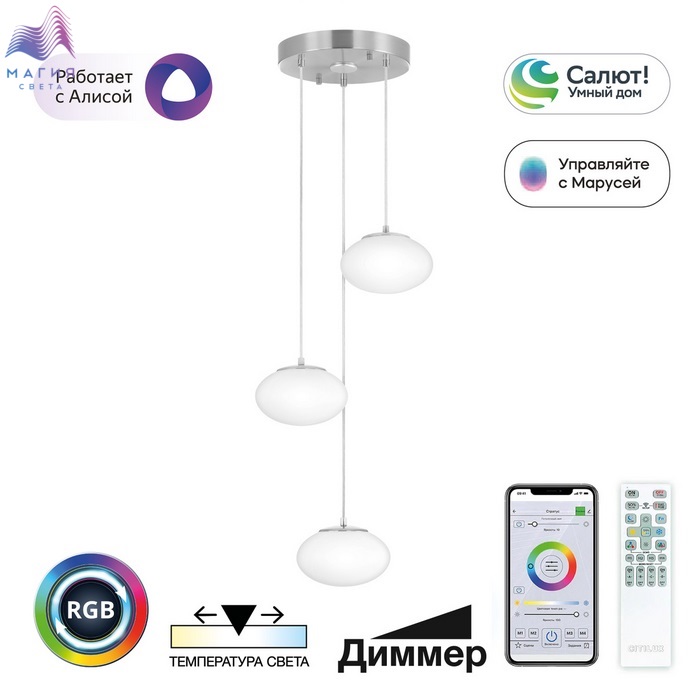 Серия потолочных люстр Citilux Atman. Корпус металлический, цвет: бронза и матовый хром. Эллиптические плафоны из оптического полимера. Можно включить либо основной свет, либо RGB. Управление с помощью пульта ДУ, умную колонку, смартфона, настенного выключателя.