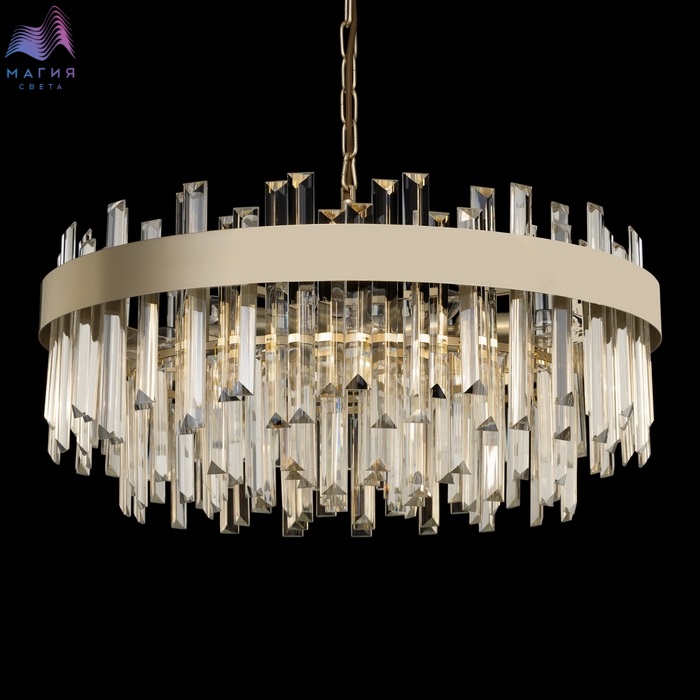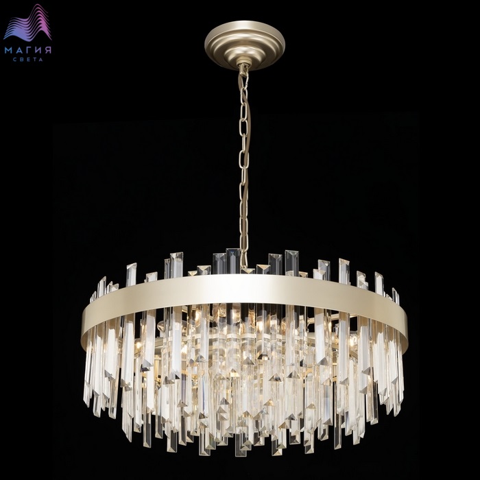 Хрустальная подвесная люстра Citilux Лаура CL301282. Материал: металл/хрусталь. Цвет: шампань/прозрачный. Хрустальные подвески кристально прозрачные с модной огранкой, расположены в несколько рядов ниспадающим каскадом.