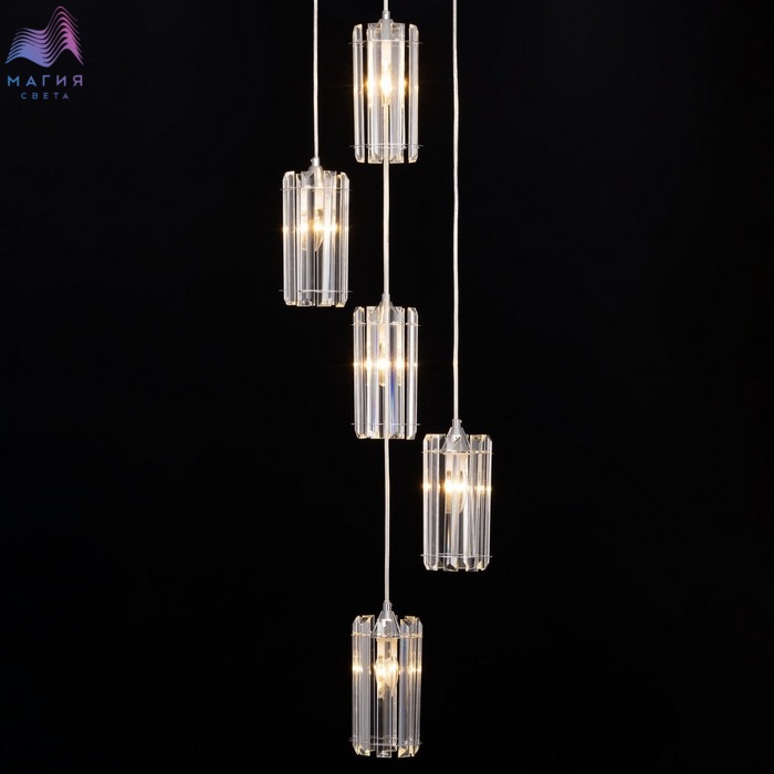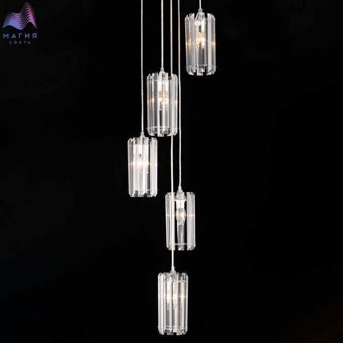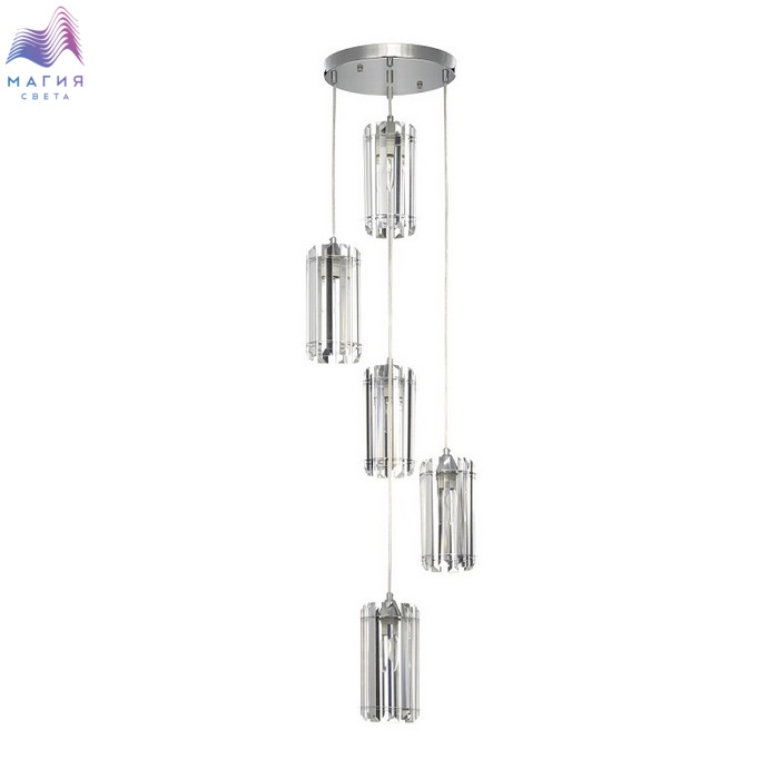 Подвесной хрустальный светильник Citilux Джейн CL306051. Материал: металл/хрусталь. Цвет: хром/прозрачный. Каждый плафон цилиндрической формы, крупные хрустальные элементы кристально прозрачные с современной огранкой. Высота регулируется при установке.