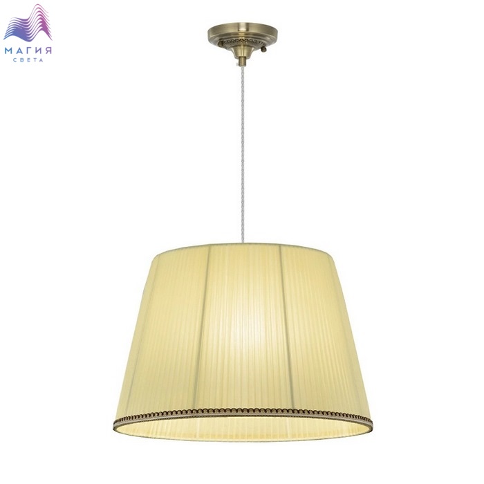 Подвесной светильник с абажуром Citilux Вена CL402033. Материал: металл/текстиль. Цвет: бронза/кремовый. Тканевый абажур из плиссированной полупрозрачной органзы кремового цвета окантован изящной тесьмой. Высота светильника легко регулируется в диапазоне от 35см до 1,45м.
