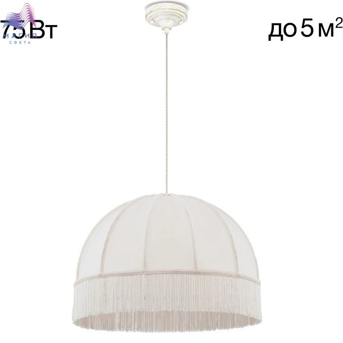 Подвесной светильник Citilux Базель CL407021. Материал: металл/текстиль. Цвет: белый с золотом/бежевый. Абажур из гладкой ткани нежно молочного цвета обшит бахромой и декорирован ажурной тесьмой. Высота светильника легко регулируется при установке в диапазоне от 40 см до 1,6 м.
