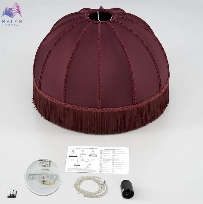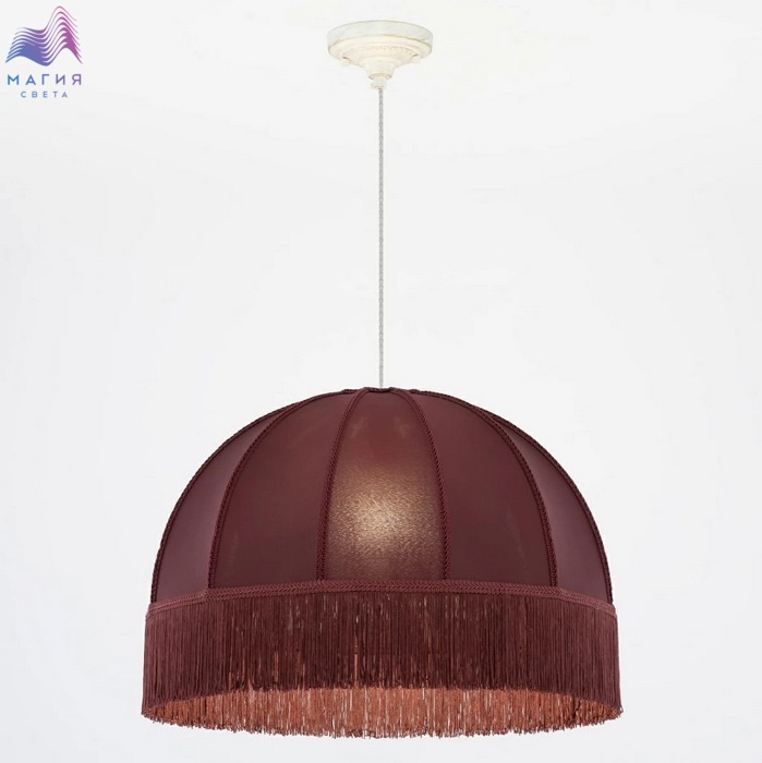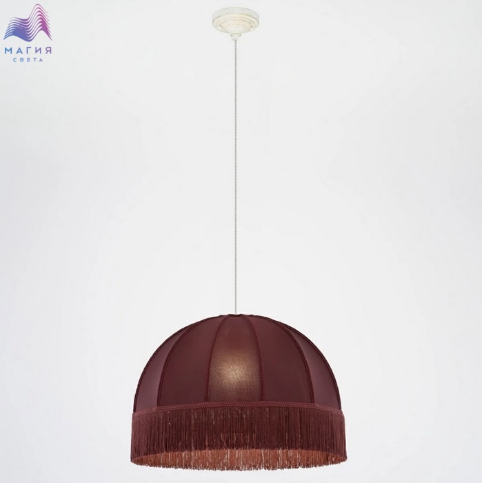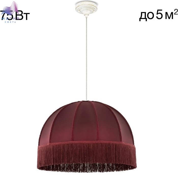Подвесной светильник Citilux Базель CL407023. Материал: металл/текстиль. Цвет: белый с золотом/красный. Абажур из гладкой тёмно-вишнёвой ткани обшит бахромой и декорирован ажурной тесьмой. Высота светильника легко регулируется при установке в диапазоне от 40 см до 1,6 м.
