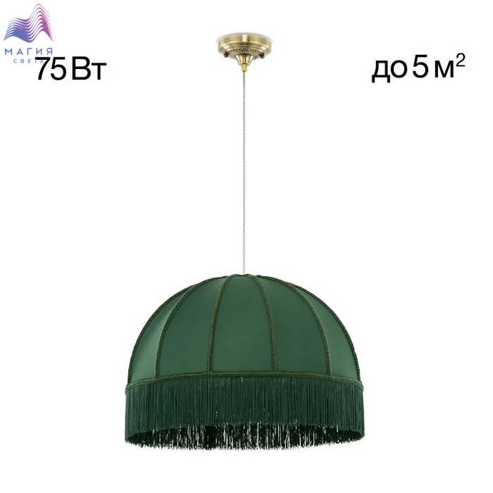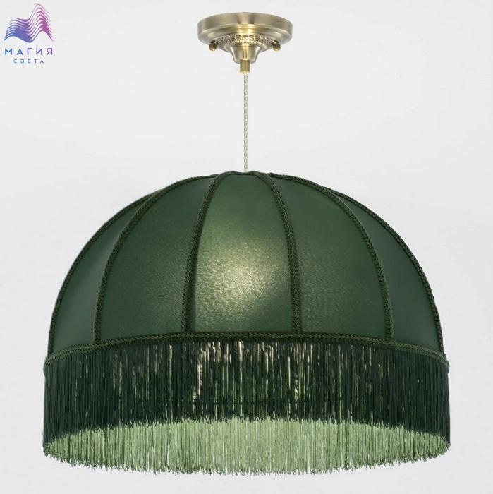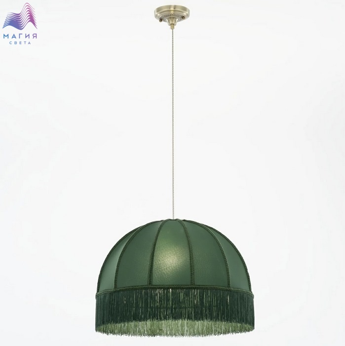 Подвесной светильник Citilux Базель CL407032. Материал: металл/текстиль. Цвет: бронза/зеленый. Абажур украшен ажурной тесьмой.