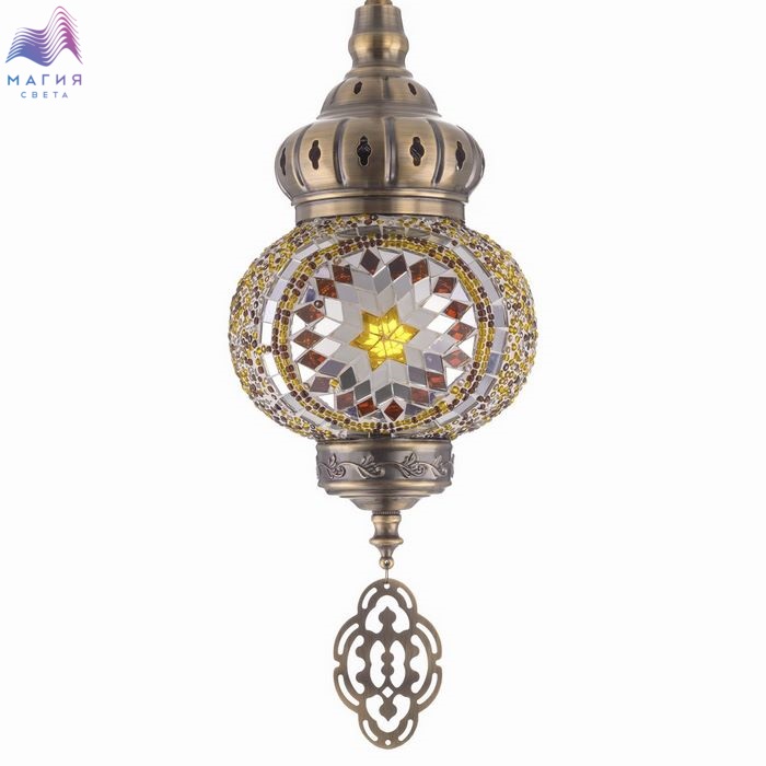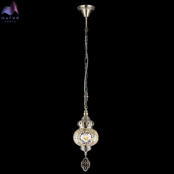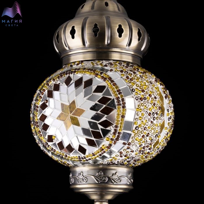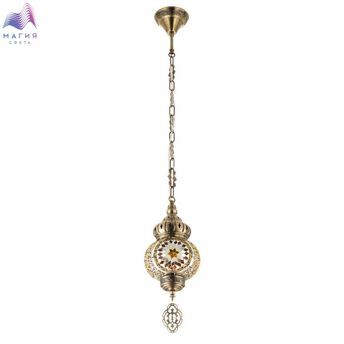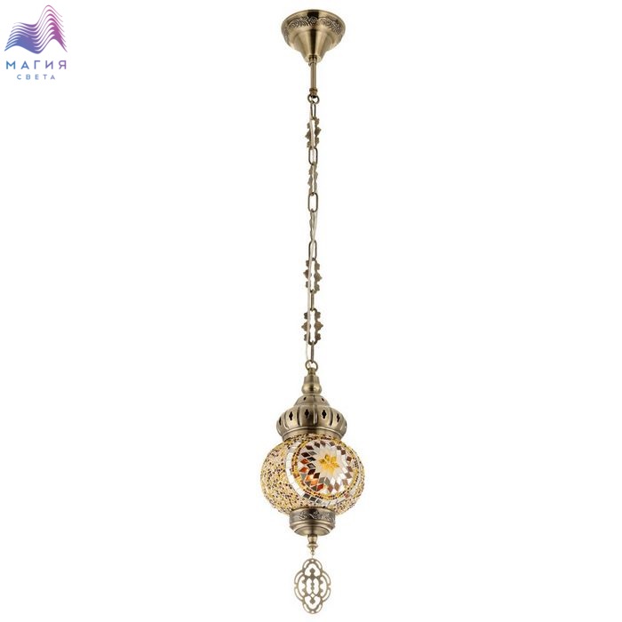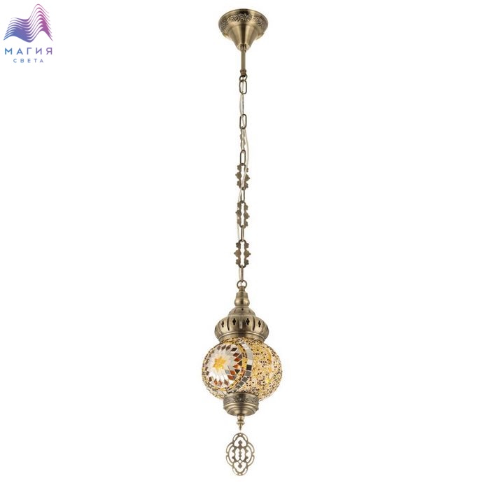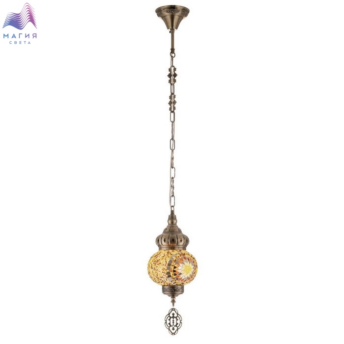 Подвесной светильник Citilux Kair CL419115. Материал: металл/стекло. Цвет: бронза/янтарный. Плафон в форме приплюснутого шара декорирован стеклянной мозаикой с янтарными оттенками.