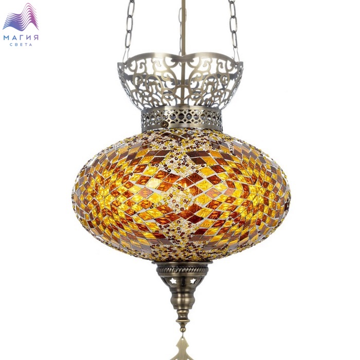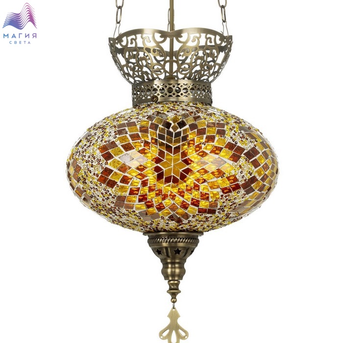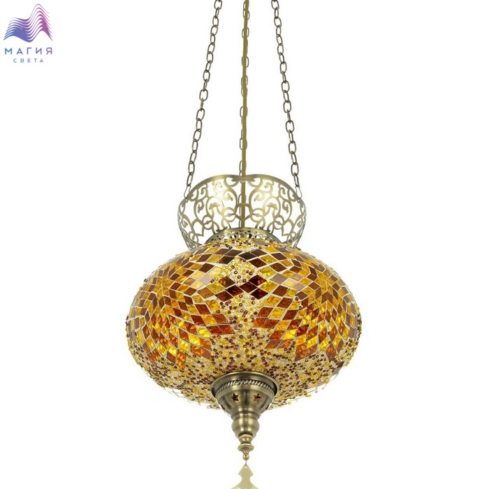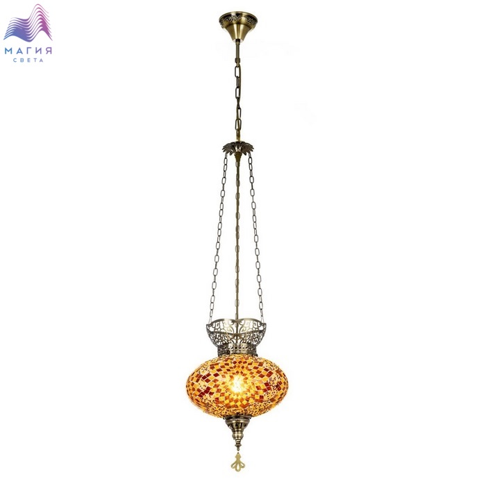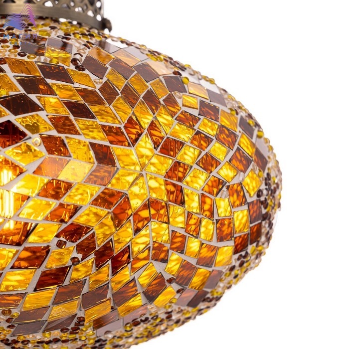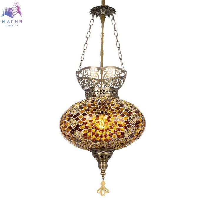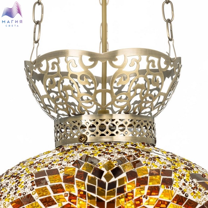 Подвесной светильник Citilux Kair CL419125. Материал: металл/стекло. Цвет: бронза/янтарный. Плафон в форме приплюснутого шара декорирован стеклянной мозаикой с янтарными оттенками.