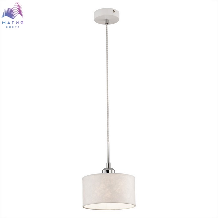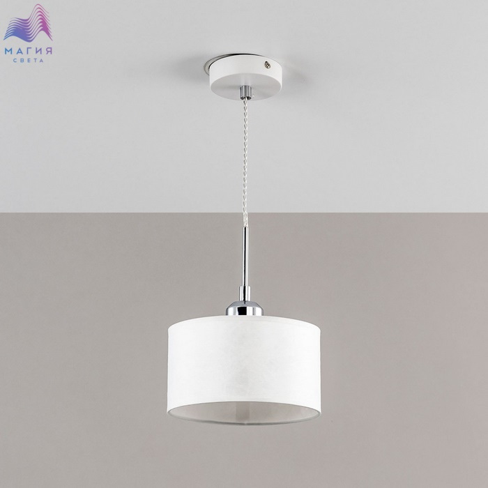 Современный подвесной светильник Citilux Тильда CL469110 для стильных интерьеров, оформленных в светлых тонах. Корпус металлический, цвет белый матовый с декоративными хромированными элементами. Абажур цилиндрической формы, изготовлен из текстурной ткани на подложке из оптического полимера.