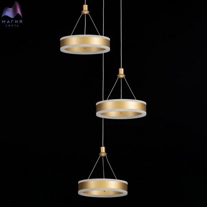 Каскадный светильник Citilux Дуэт CL719032 выполнен в современном стиле. Материал: металл. Цвет: благородное золото. Светильник состоит из круглого основания и пяти подвесных колец. Изделие оснащено встроенным ступенчатым диммером, три уровня яркости – 100-40-15%, управляется обычным настенным выключателем. Цветовая температура 4000К - нейтральный белый свет.