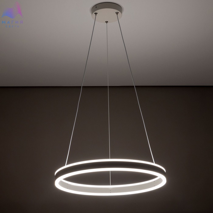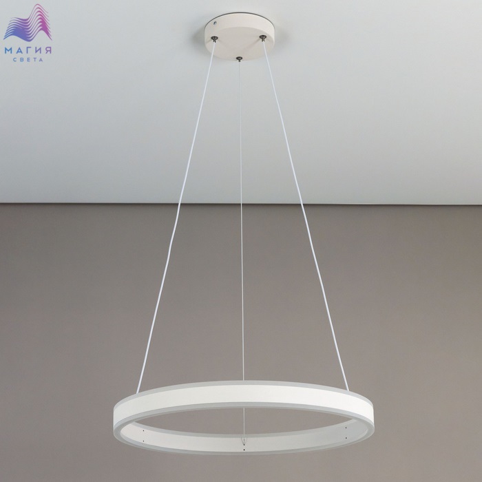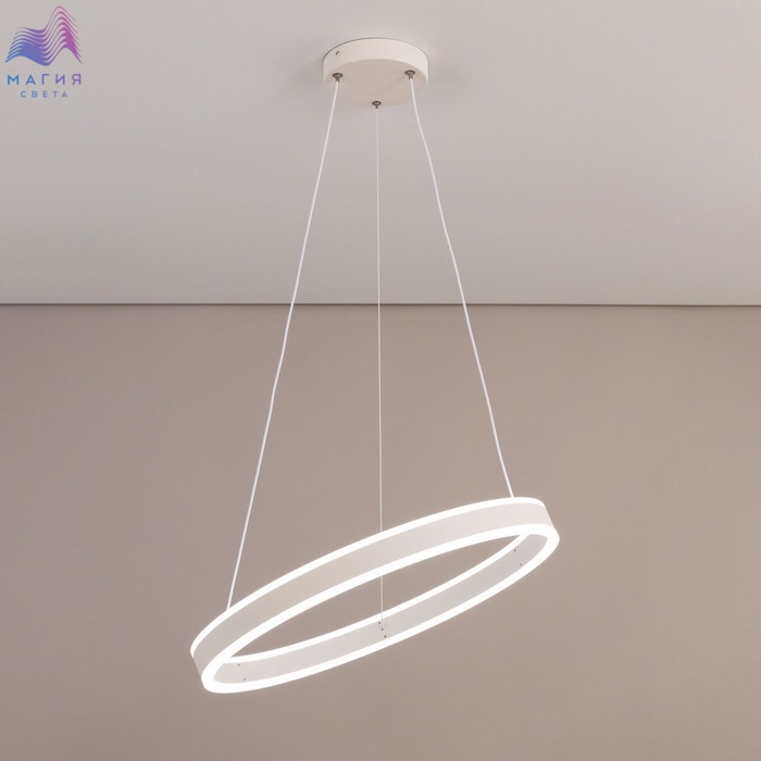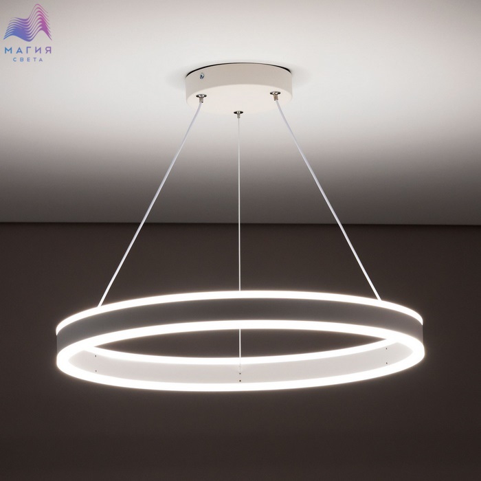 Светодиодный светильник Citilux Дуэт CL719500 в современном стиле, цвет белый. Люстра на тросах в форме подвесного кольца, высоту и угол наклона которого можно легко изменить. Кольцо изготовлено из алюминиевого профиля, с рассеивателем из полимера. Модель управляется пультом ДУ. Плавная регулировка яркости (от 10 до 100%) и цвета свечения (от 3000К до 5500К).