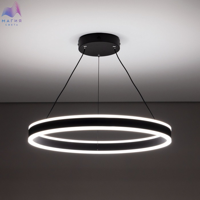 Светодиодная люстра Citilux Дуэт CL719501, цвет чёрный. Люстра на тросах в форме подвесного кольца, высоту и угол наклона которого можно легко изменить. Кольцо - алюминиевый профиль, рассеиватель - полимер. Наличие источников света с двух сторон профиля позволяет равномерно осветить всё помещение. Пульт ДУ в комплекте. Доступно: плавная регулировка яркости от 10 до 100%; управление цветовой температурой от 3000К до 5500К.