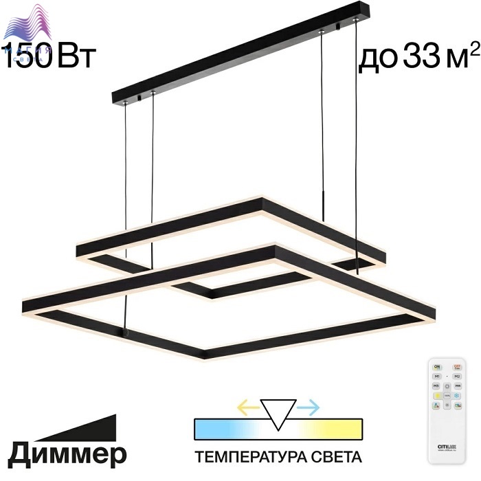 Светодиодный подвесной светильник Citilux Дуэт CL719K211. Материал: металл/полимер. Цвет: черный/белый. Модель с двумя подвесными квадратными светодиодными модулями-плафонами, высоту и угол наклона каждого из которых можно легко изменить. Пульт ДУ в комплекте (плавная регулировка яркости от 10 до 100%; управление цветовой температурой от 3000К до 5500К). Площадь освещения - до 33м².