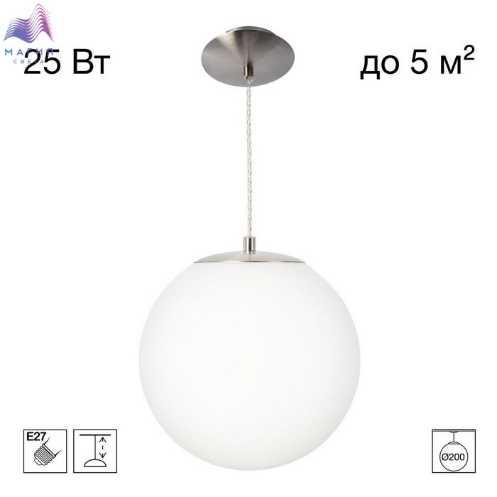 Подвесной светильник шар Citilux RON CL941D20S1. Материал: металл/полимер. Цвет: матовый хром/белый. Высота светильника регулируется.