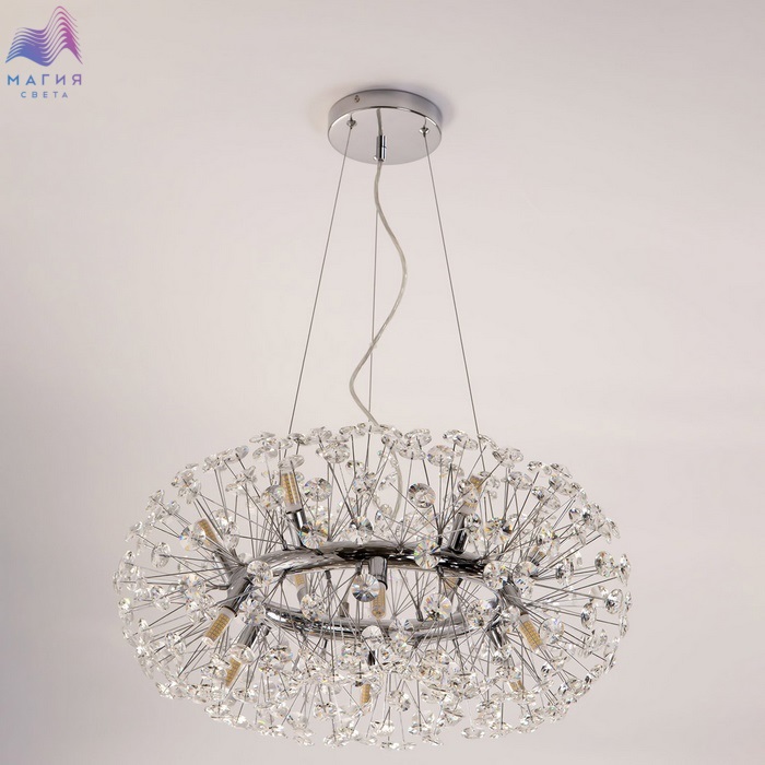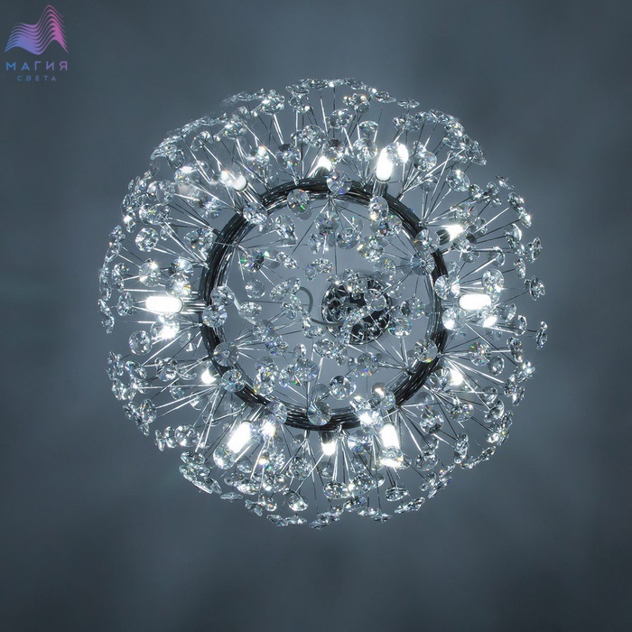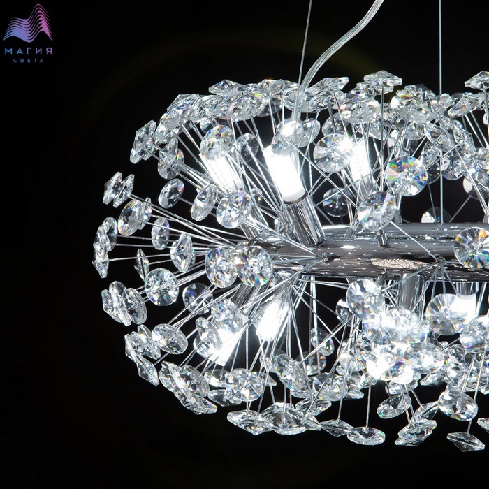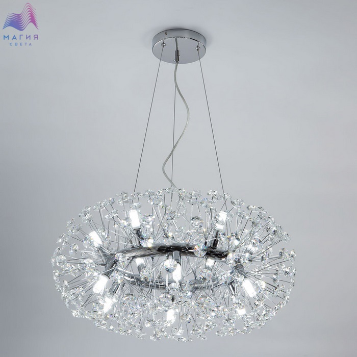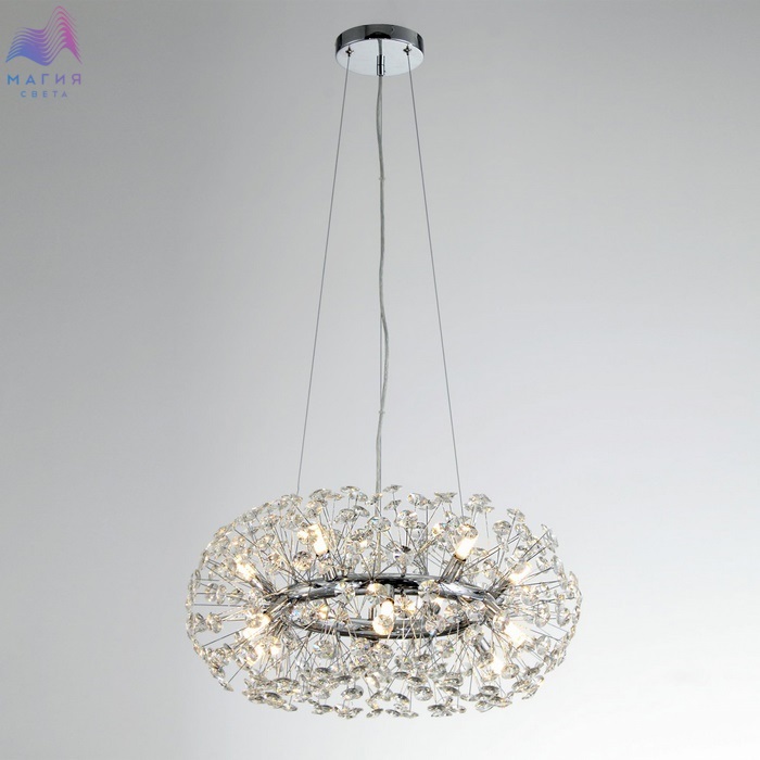 Подвесной светильник Citilux Betsy EL322P12.1 исполнен в современном стиле. Материал основания - металл, цвет - хром. Светильник декорирован множеством хрустальных элементов.