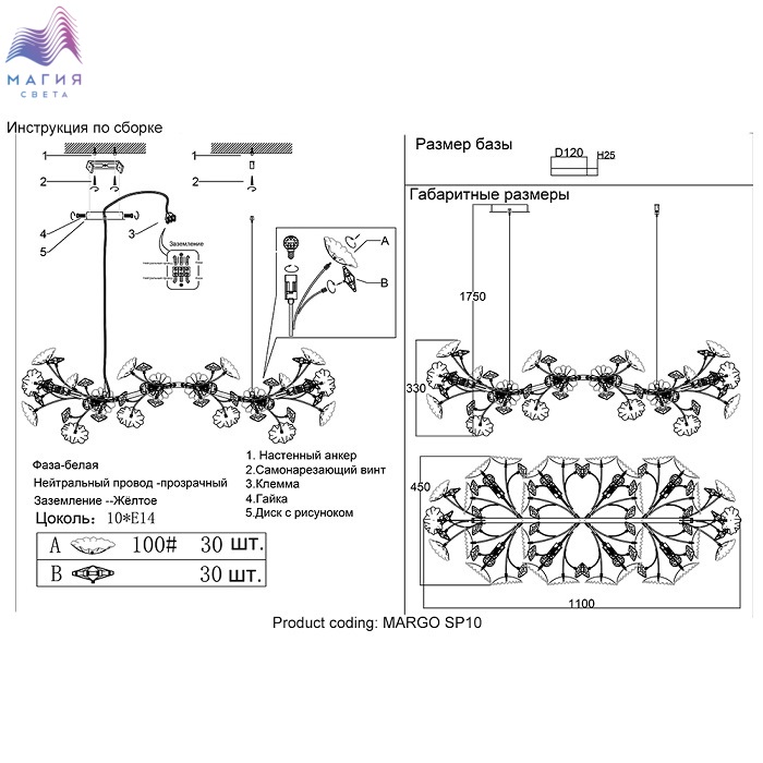 Цвет плафонов белый, золото, прозрачный