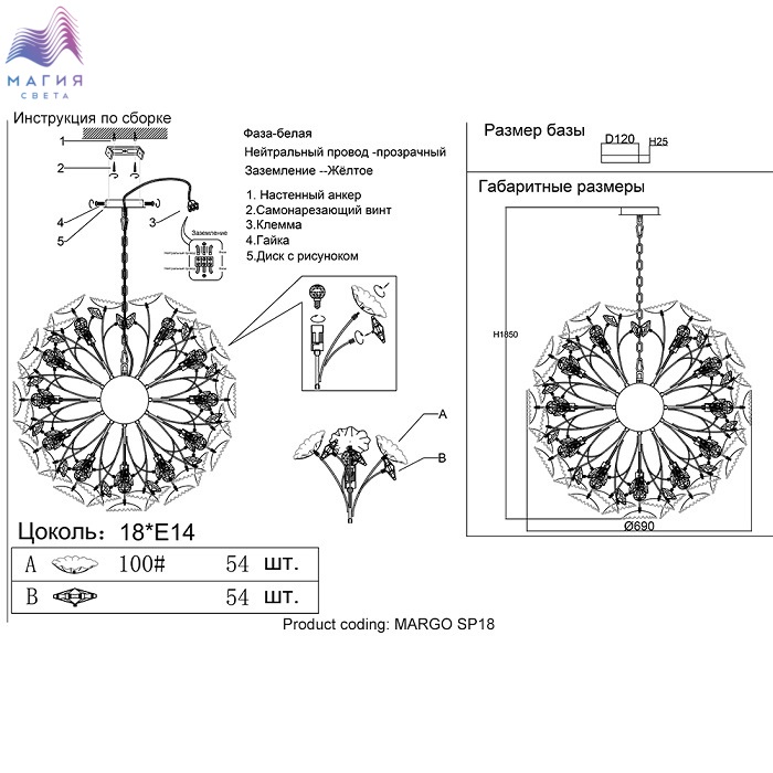 Цвет плафонов белый, золото, прозрачный