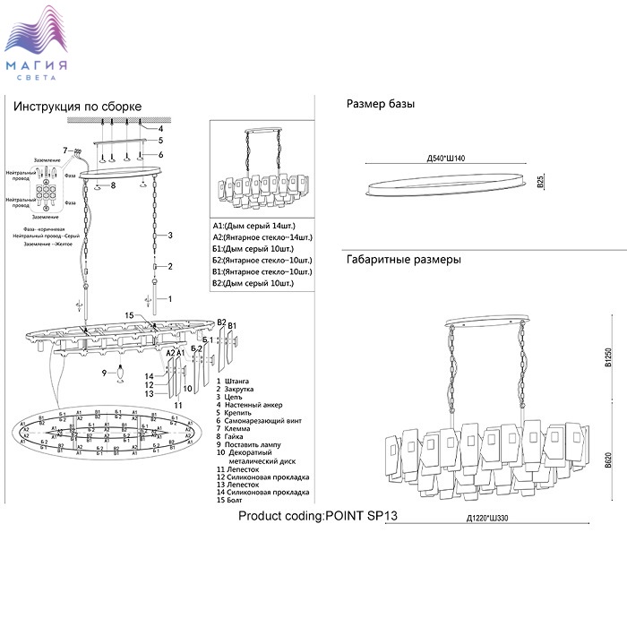 Цвет плафонов янтарный, дымчатый