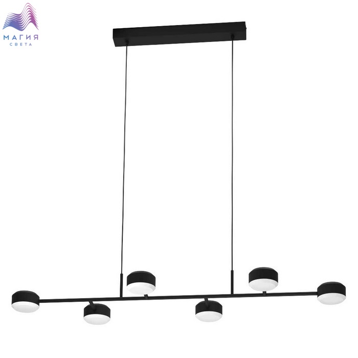 Современная серия Eglo Clavellina исполнена в черном цвете. Плафон дополнен акриловым рассеивателем белого цвета. В качестве источников света используются встроенные светодиоды.