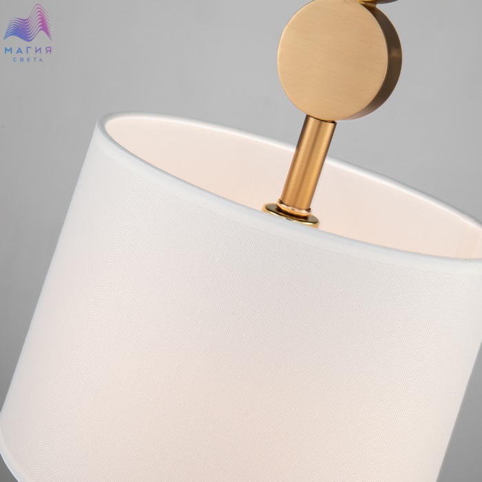 Уютная коллекция Favourite Roshe выполнена из матовой латуни. Украшением коллекции являются декоративные элементы, напоминающие монетки. Они повторяются на рожках и центральном штоке. Плафоны изготовлены из белого шелка.