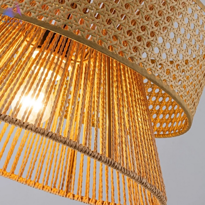 Коллекция светильников Favourite Organicum сочетает в себе природную эстетику и современный дизайн. Абажуры изготовлены из натуральных материалов: ткани, ротанга и плетеных бумажных канатиков, дополненные декоративным поясом из плетеного бамбука.