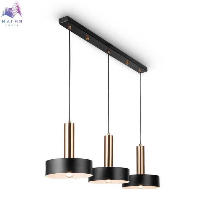 Серия Fryea Izza выполнена в лучших традициях индустриального стиля. Арматура и плафон светильника сделаны из металла. Черный оттенок в сочетании с элементами цвета латуни сможет дополнить большинство интерьеров. Одиночный подвес и подвесную люстру на три плафона можно использовать для подсветки обеденных и рабочих зон на кухне, места отдыха в гостиной.