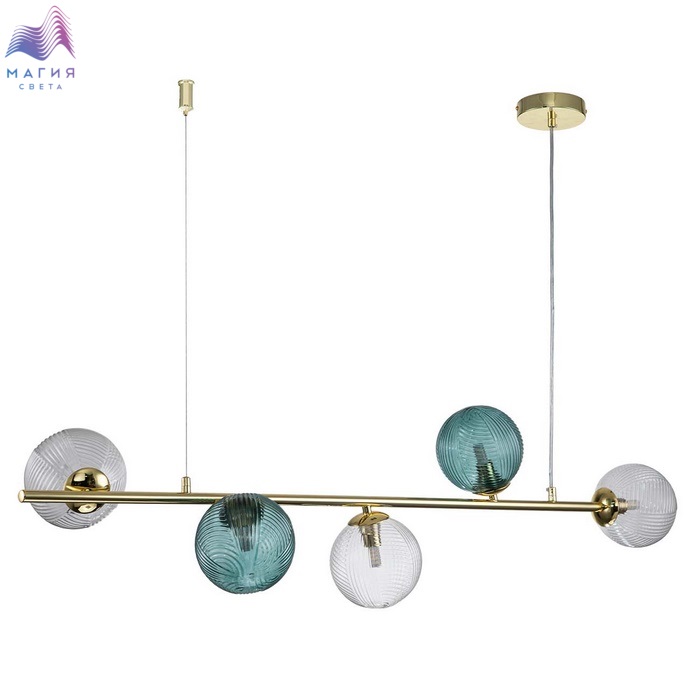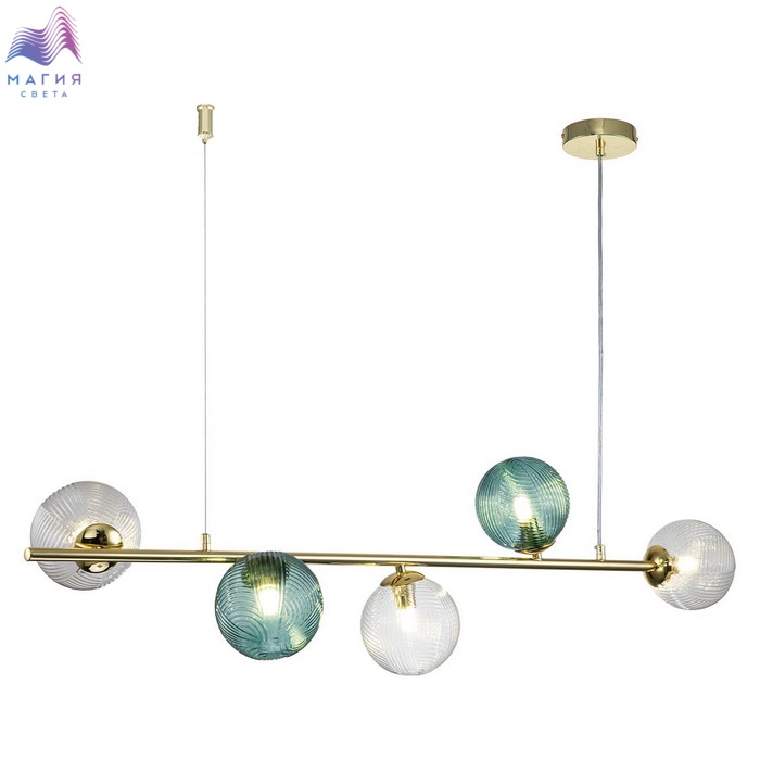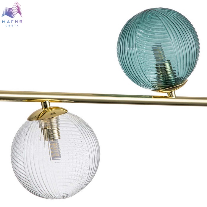 Коллекция INDIGO Selva позволяет внести нотки природной красоты в ваш интерьер. Золотой каркас с элегантными изгибами напоминает ветки, на которых красуются зеленые и прозрачные плафоны с разнообразной текстурой.