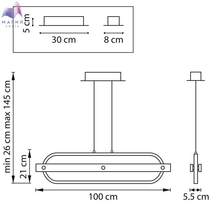 Высота без подвеса (мм) 210