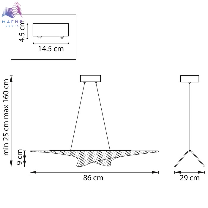 Высота без подвеса (мм) 90