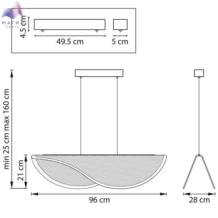 Высота без подвеса (мм) 210