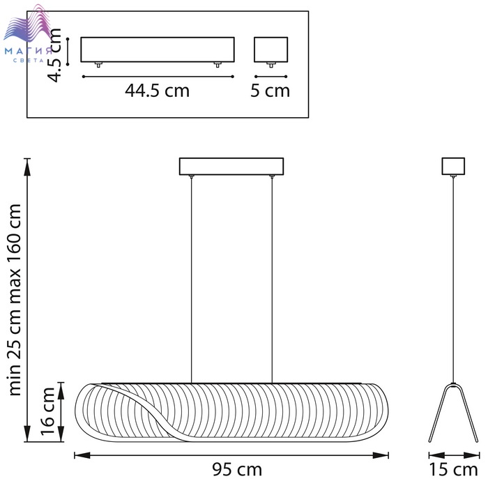 Высота без подвеса (мм) 160