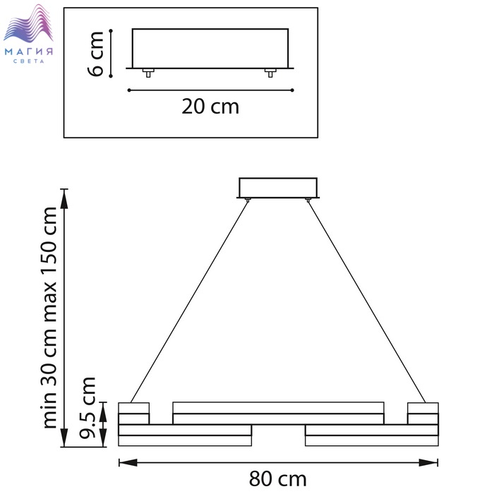 Высота без подвеса (мм) 95