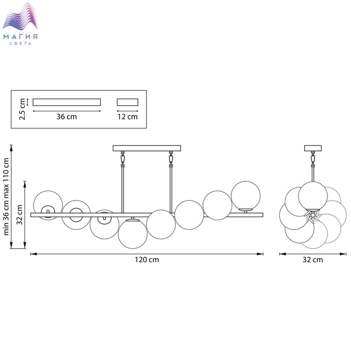 Высота без подвеса (мм) 320