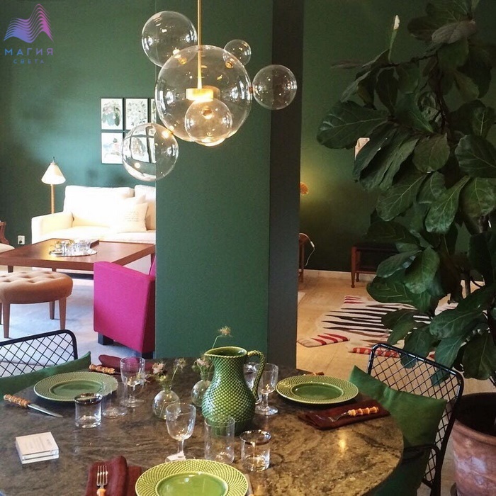 Форма пузырей актуальна в этом сезоне. Светильники серии LOFT IT Bolle представлены модели с разным количеством шаров, что позволяет создавать невероятные по своей красоте композиции. Металлический каркас окрашен в золотой цвет. Высота светильников регулируется длиной провода при монтаже.