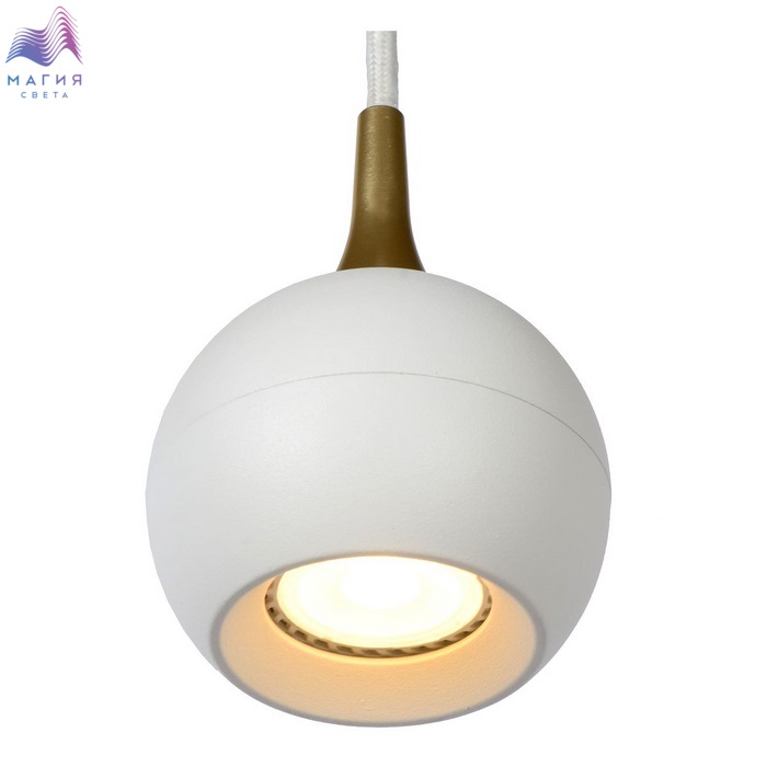 Модный подвесной светильник Lucide Favori будет уютно смотреться над журнальным столиком. Плафон в форме сферы выполнен из металла. Белый плафон дополнен латунной деталью. Лампочка утоплена внутри плафона. Провод регулируется по высоте, чтобы позволяет адаптировать светильник под комнаты с небольшой высотой.