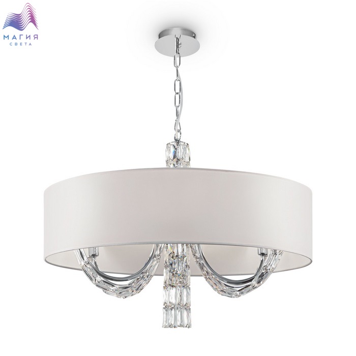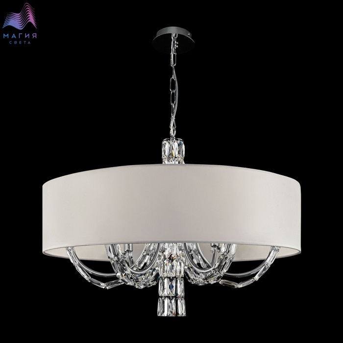 Коллекция Maytoni Talento органично впишется как в классический, так и современный интерьер. Металлическая арматура цвета "хром" обильно декорирована стеклянными элементами. Абажуры из ПВХ покрыты белой тканью.
