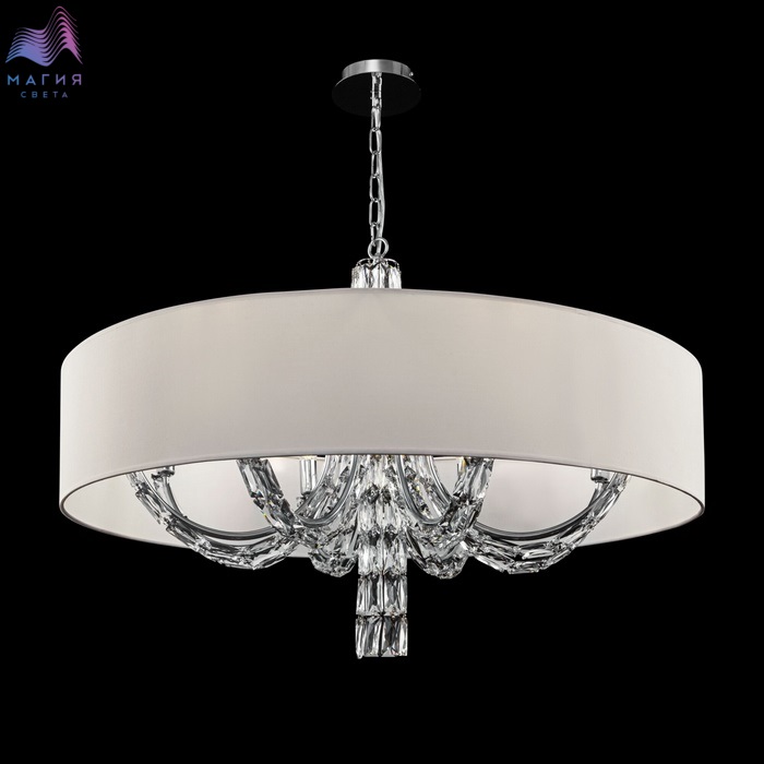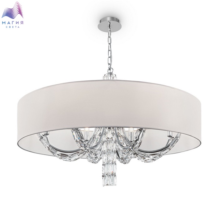 Коллекция Maytoni Talento органично впишется как в классический, так и современный интерьер. Металлическая арматура цвета "хром" обильно декорирована стеклянными элементами. Абажуры из ПВХ покрыты белой тканью.