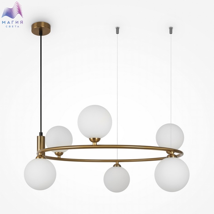 Простые и визуально легкие светильники серии Maytoni Ring позволят без усилий организовать общую подсветку интерьера. На округлом металлическом каркасе располагаются плафоны из выдувного матового стекла. Новый латунный оттенок арматуры в коллекции легко дополнит любое актуальное цветовое решение интерьера. Высоту подвесных светильников на 6, 4 и 2 плафона возможно отрегулировать длиной тросов и провода.