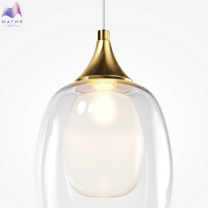 Коллекция Maytoni Aura исполнена в стиле модерн. Металлическая арматура покрыта латунной краской. Плафоны, состоящие из двух частей, выполены из прозрачного и матового стекла. Высота потолочных люстр регулируется с помощью частей штанги.
