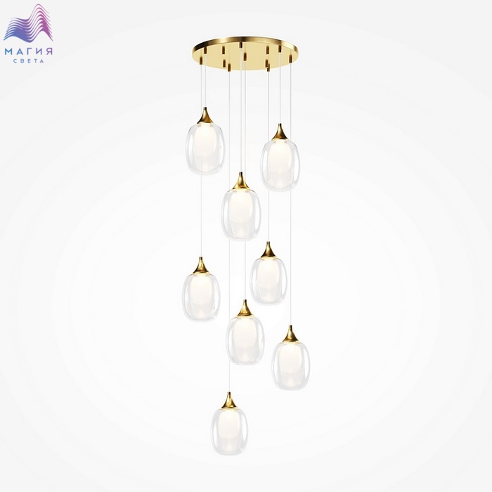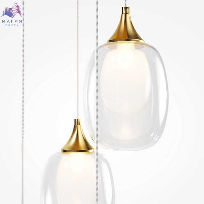 Коллекция Maytoni Aura исполнена в стиле модерн. Металлическая арматура покрыта латунной краской. Плафоны, состоящие из двух частей, выполены из прозрачного и матового стекла. Высота потолочных люстр регулируется с помощью частей штанги.