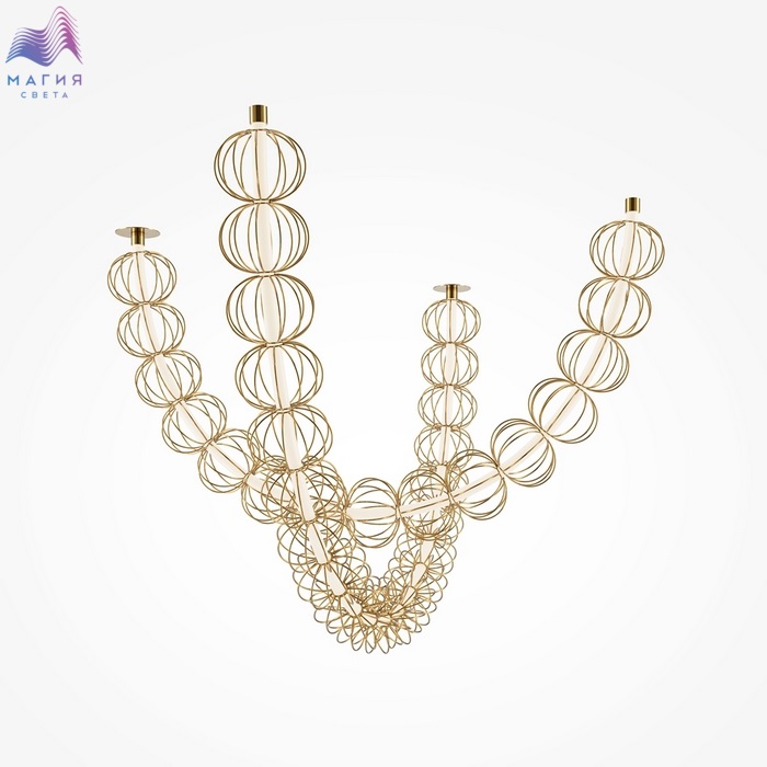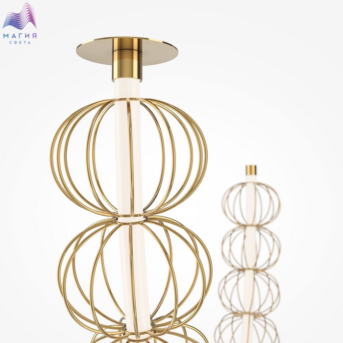 Maytoni Golden Cage - это уникальная коллекция светильников. Вместо стандартного плафона дизайнеры обрамили силиконовую трубку металлическими золотыми сферами.