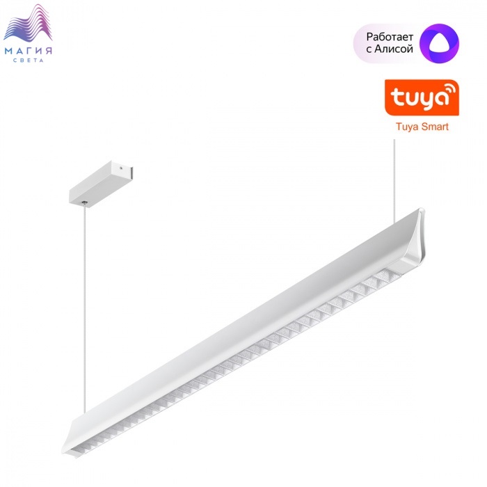 Подвесной светодиодный диммируемый линейный светильник Novotech ITER с регулируемой цветовой температурой (3000 - 6000К). Управление – пульт ДУ (арт. 358637) или приложение Smart Life. Светильник использует протокол TUYA Bluetooth, который не поддерживает прямое подключение к вашему домашнему Wi-Fi-маршрутизатору. Для подключения светильника к интернету через Wi-Fi и управления им через приложение или голосового ассистента необходим умный шлюз (арт. 359392).