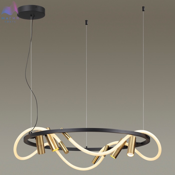 Для пользователей с развитым духом новаторства, при этом ценителей эко материалов отлично подойдет серия Odeon light Corda ("веревка" с итальянского языка). Подвесной светильник диаметром 90 cм станет отличным решением для широких загородных пространств. Споты выполнены в цвете античная бронза и снабжены светофильтром honeycomb, вращаются на 180°. Светильник отлично впишется в лофт пространства, в интерьеры в стиле ЭКО, гранж, HIGHTECH, или любое эклектичное пространство.