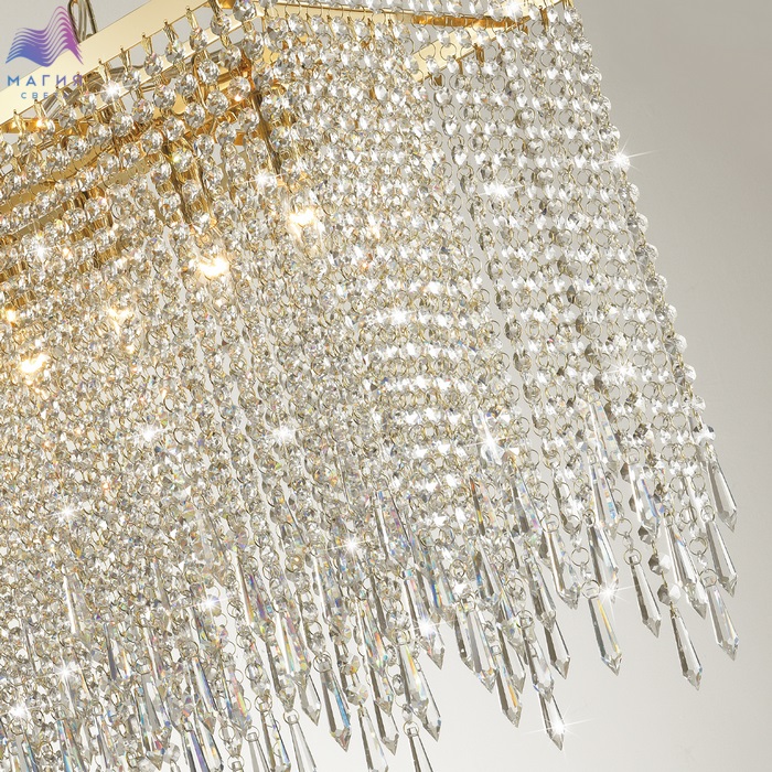 Odeon light Chokka — великолепная широкая линейка светодиодных моделей. 10 различных светильников – 3 вида бра, 2 вида подвесов, 3 вида люстр, торшер, настольная лампа - из одной серии способны создать шикарный ансамбль из современный хрустальных светильников и осветить несколько помещений, создавая единую световую концепцию. Множество хрустальных длинных подвесок с элегантным пирамидальным завершающим элементом каждой создают невероятный целостный абажур из переливающихся и струящихся нитей.
