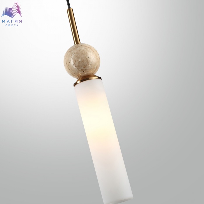 Серия Odeon light Lolla сочетает элегантную геометрию и природные материалы. В подвесном светильнике используется мрамор бежевого цвета, эффектно сочетающийся с металлом под латунь и вытянутым плафоном из стекла.