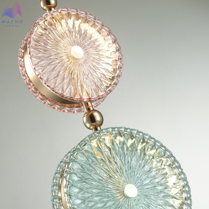 Коллекция Odeon light exclusive Caramella получила своё название благодаря сходству с карамельными конфетами. В ней сочетаются стекло нежных пастельных оттенков, золотой или хромированный металл, разнообразные паттерны стёкол и современный LED источник света.