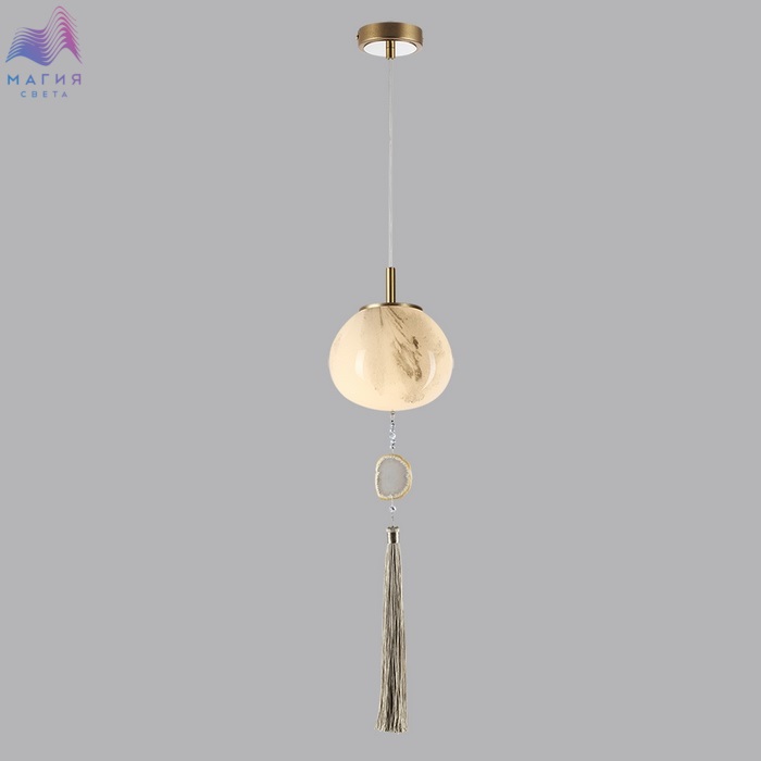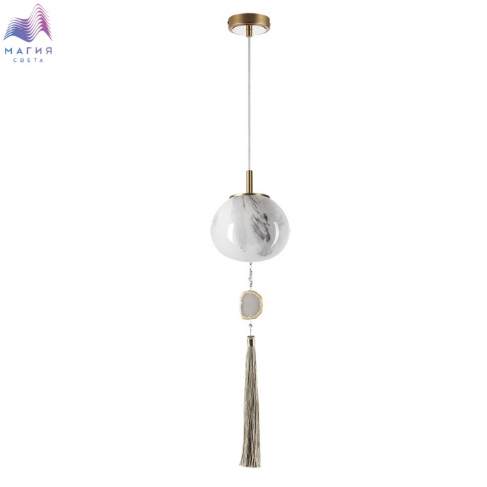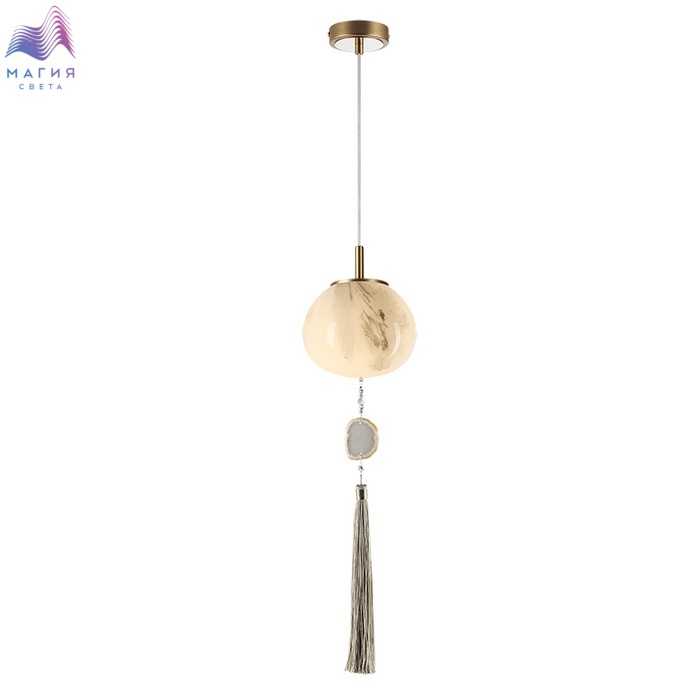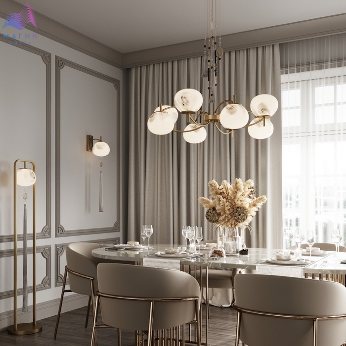 Нежная коллекция Odeon light exclusive Fiolent исполнена в стиле неоклассика. Главным декоративным элементом является струящаяся кисть и натуральный агат. Плафон изготовлен из стекла, напоминающего мраморные узоры.