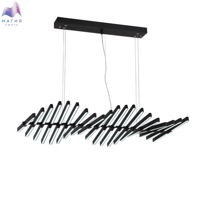 Подвесные светильники ST luce Picodi имеют волнообразную форму. Каркас состоит из тонких металлических реек, дополненных акриловыми рассеивателями. Светильник покрыт черной краской. Данные модели будут особенно уместны над длинным столом.