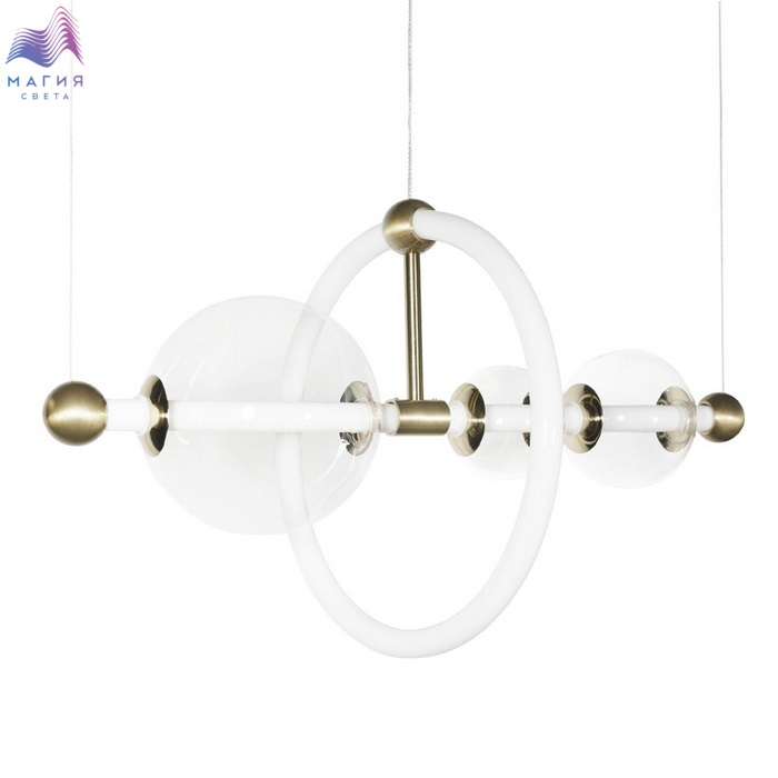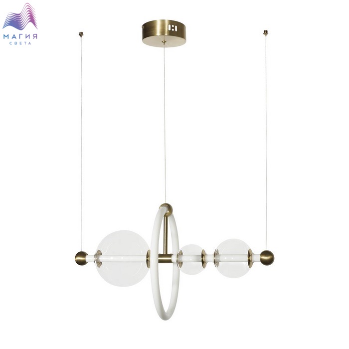 Серия LOFT IT Alpha - современная коллекция, представленная подвесными моделями необычной конструкции. Металлические части окрашены в золотой цвет. Плафон состоит из двух частей: акриловой (светящейся) и стеклянных шаров. Длину проводов можно отрегулировать при монтаже.